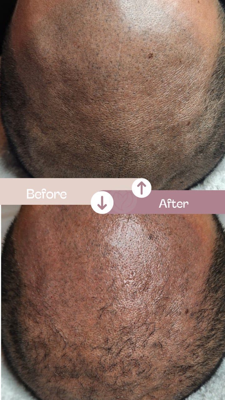 Ayudando a combatir la caída, mejorar la circulación y nutrir los folículos capilares para el buen crecimiento del cabello, acompañado de terapia LED